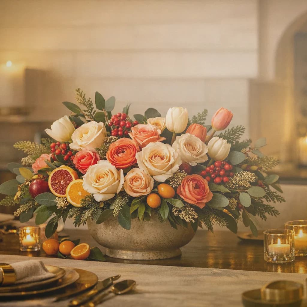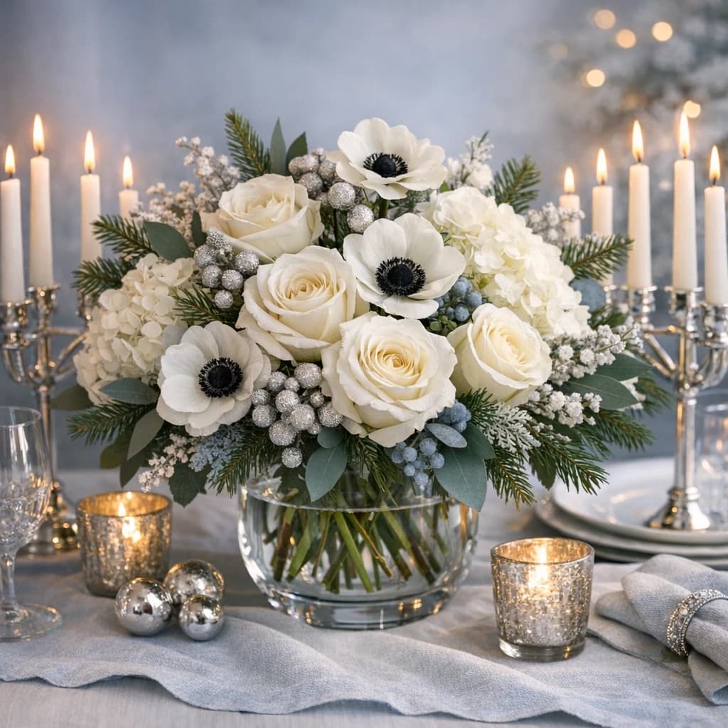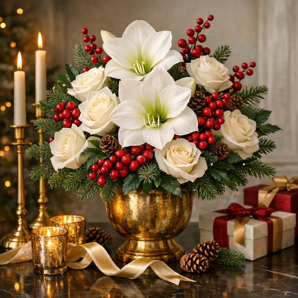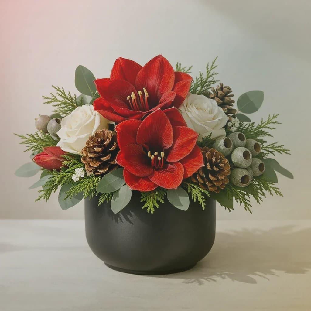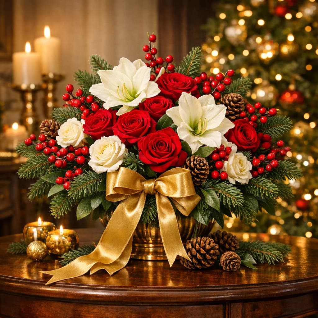 Christmas flowers, festive winter centerpieces, and evergreen arrangements for hosting, gifting, and same-day holiday delivery in Van Nuys.