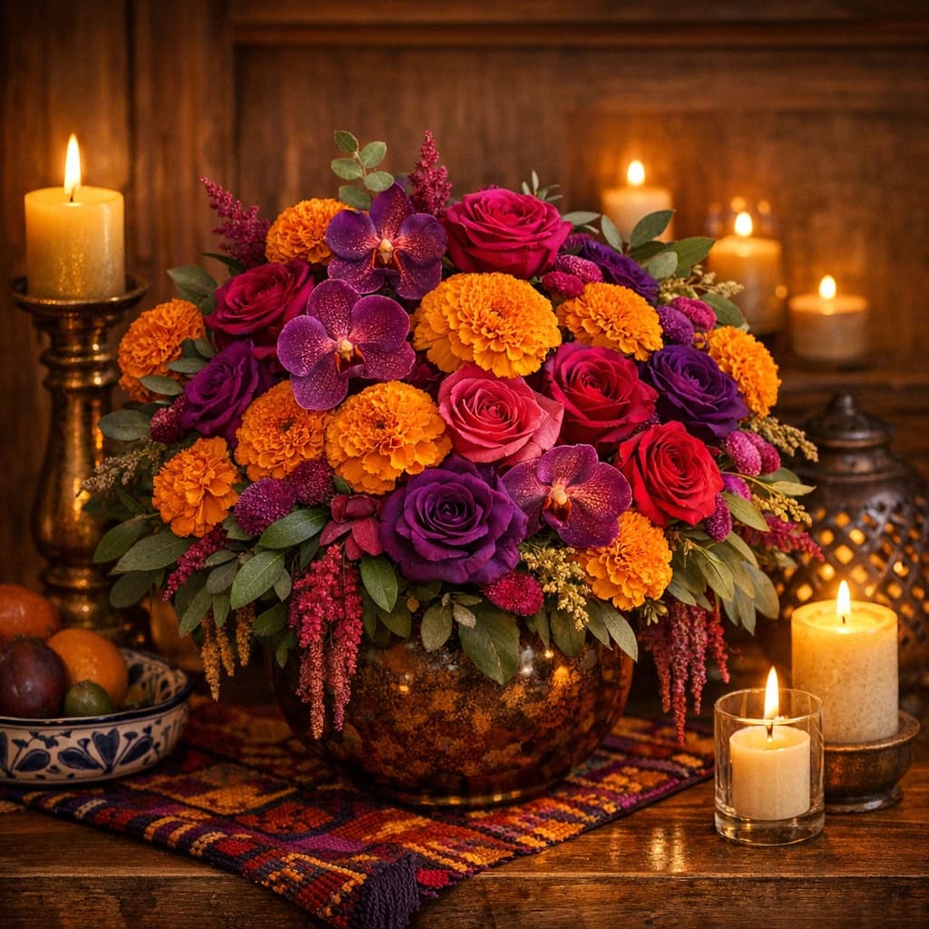 Dia de los Muertos flowers, marigold-led arrangements, and respectful remembrance florals for altars, gatherings, and Van Nuys delivery.