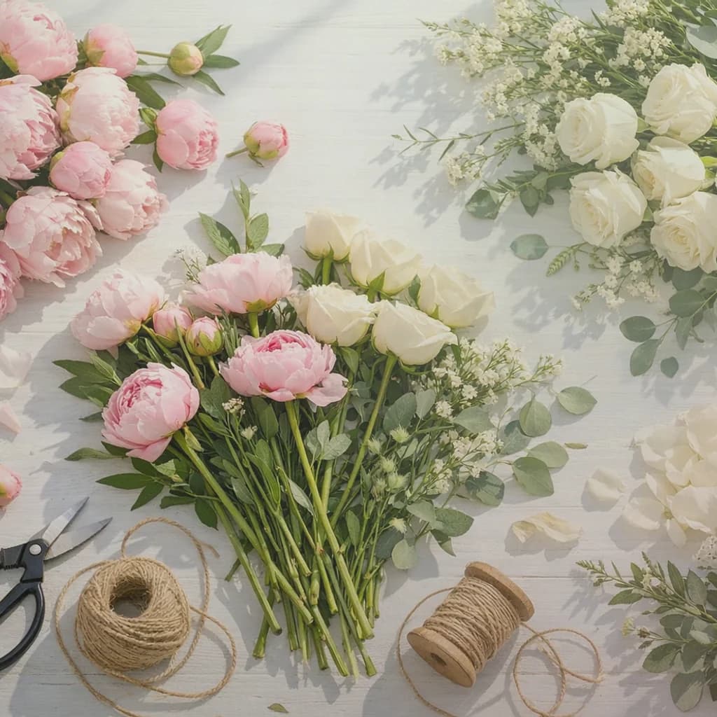 Preparing flowers, pages, and seasonal details.