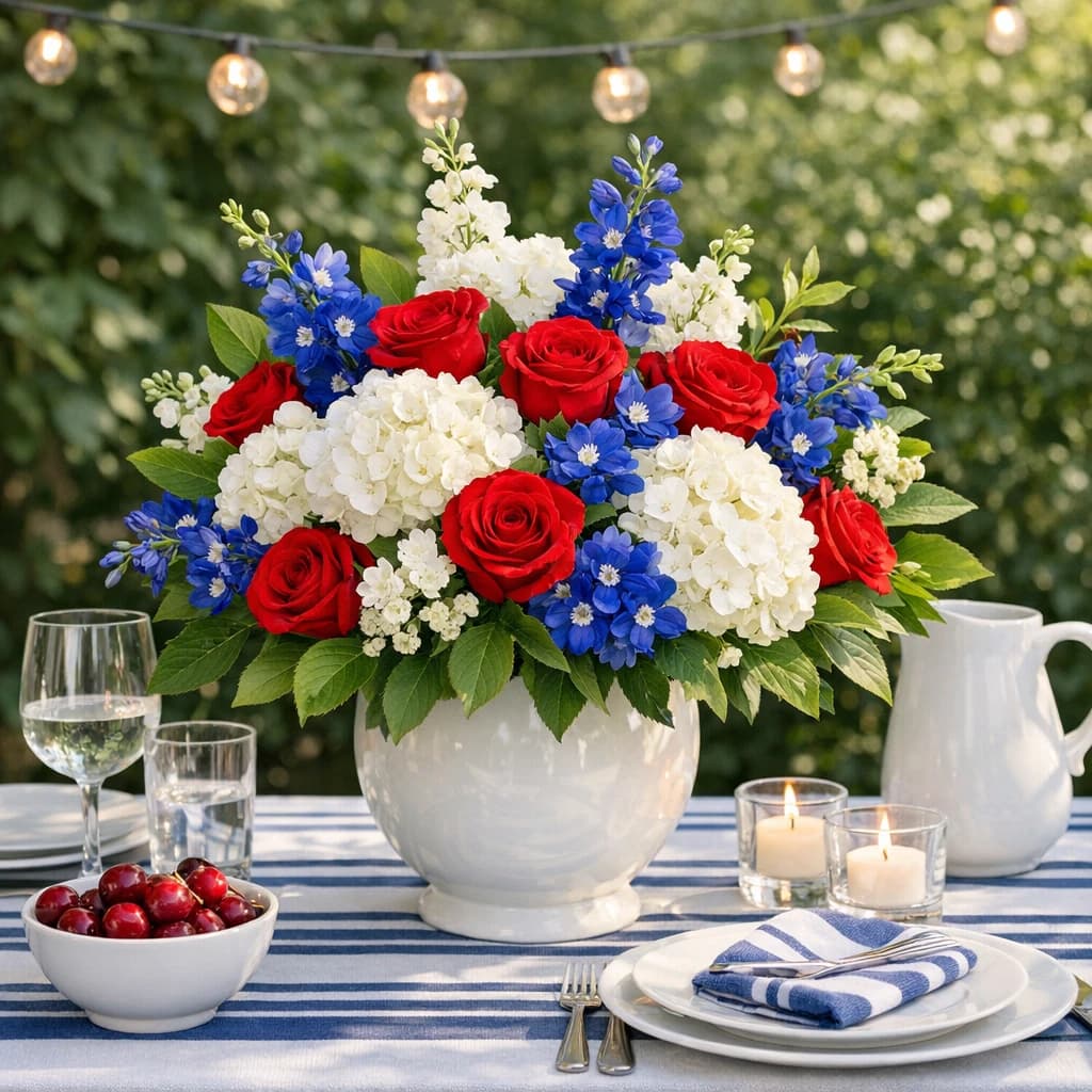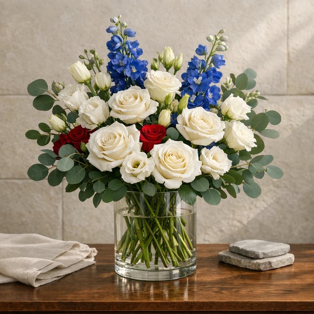 Fourth of July flowers, patriotic summer centerpieces, and crisp red-white-and-blue bouquets for gatherings and local delivery in Van Nuys.