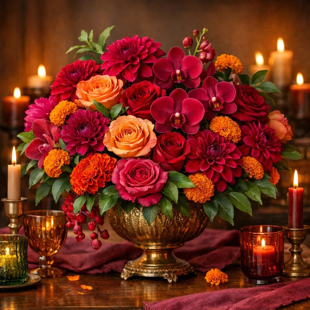 Hispanic Heritage Month flowers, vibrant event arrangements, and rich jewel-tone bouquets for gatherings and local Van Nuys delivery.