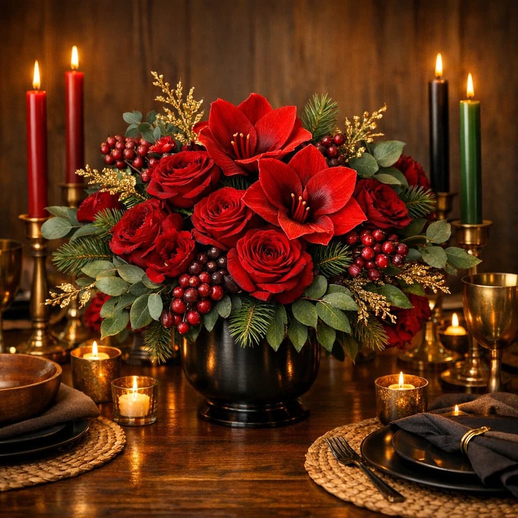 Kwanzaa flowers, communal centerpieces, and rich winter arrangements for meaningful family gatherings and Van Nuys delivery.