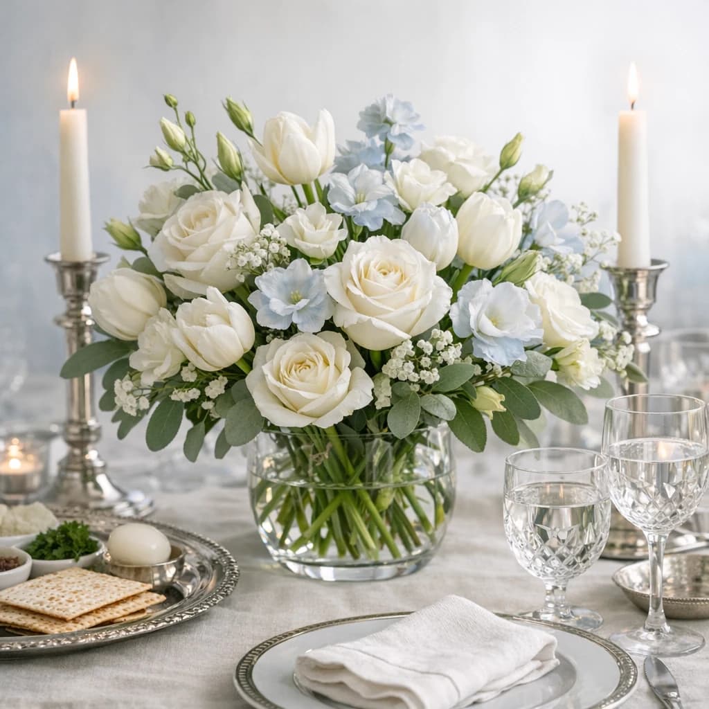 Passover flowers, seder table centerpieces, and spring arrangements with quiet color, clean lines, and respectful styling for Van Nuys delivery.