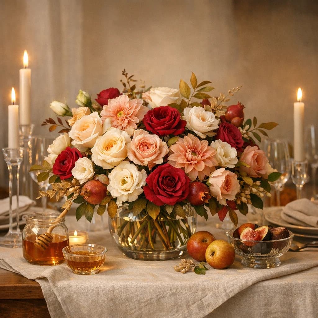 Rosh Hashanah flowers, holiday-table centerpieces, and warm early-autumn arrangements for elegant family gatherings and Van Nuys delivery.