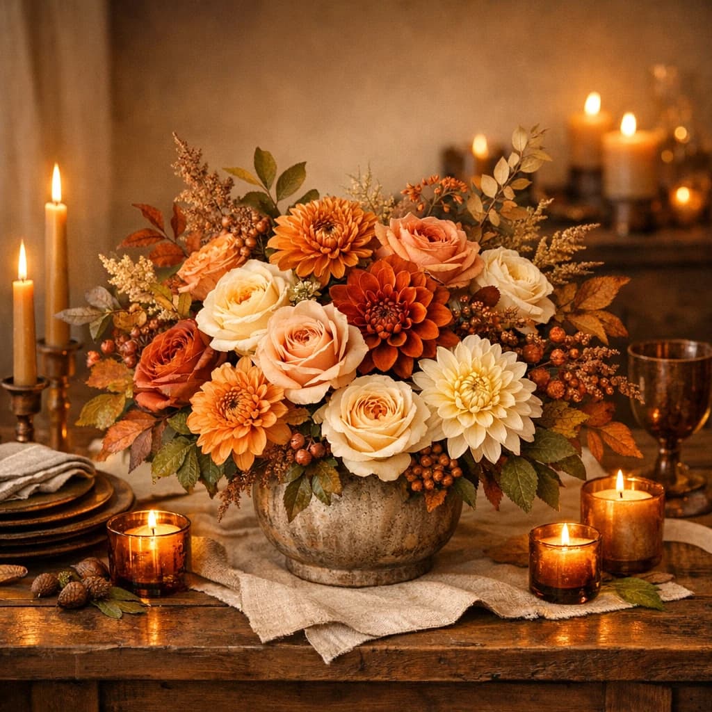 Thanksgiving flowers, harvest centerpieces, and warm autumn arrangements for polished holiday hosting and local delivery in Van Nuys.
